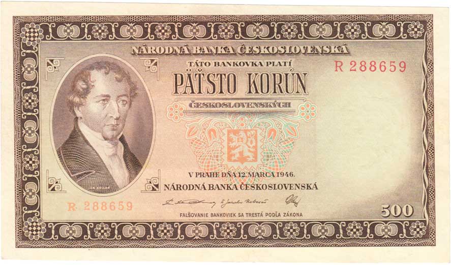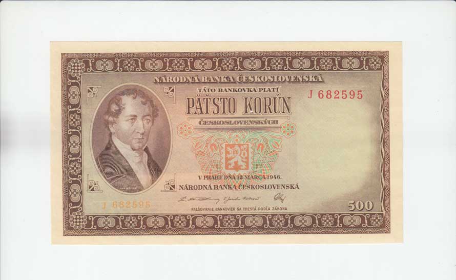 | 3228. | 500 Koruna 1946, série J, BHK.80a, He.87a, "neperf." | 3+ | 100,- | 190,- |