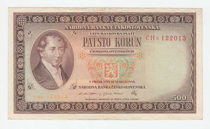 | 3232. | 500 Koruna 1946, série J, BHK.80a, He.87a.s1,