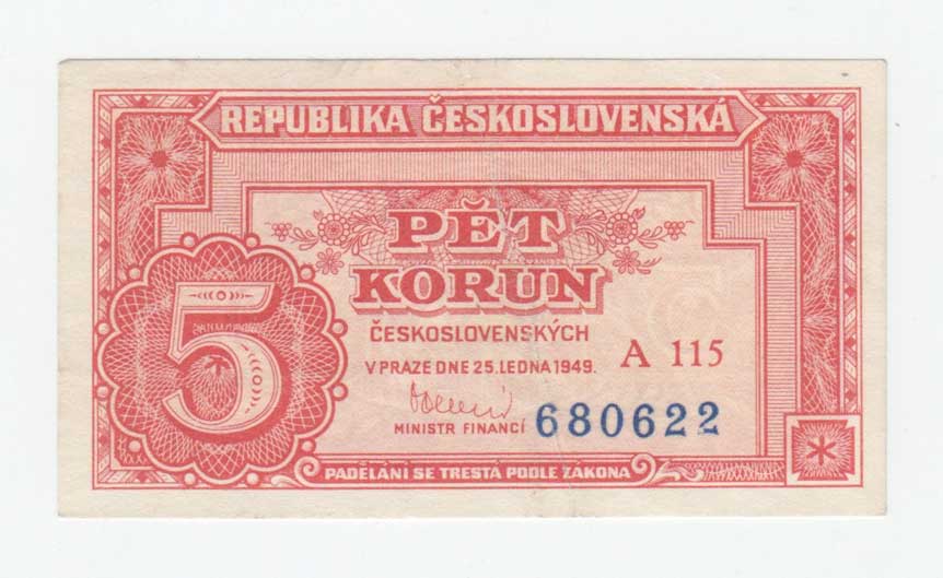 | 3240. | 5 Koruna 1949, série A103, BHK.82c, He.89a3,