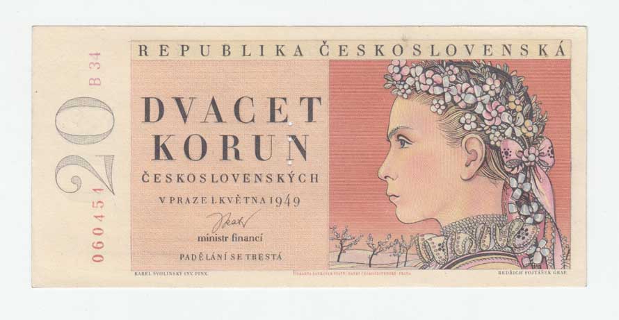 | 3244. | 20 Koruna 1949, série A13, BHK.83a, He.90a,