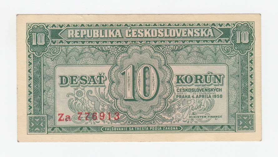 | 3256. | 10 Koruna 1950, série Za, BHK.84b, He.92b, "neperf." | 1+ | 40,- | 40,- |