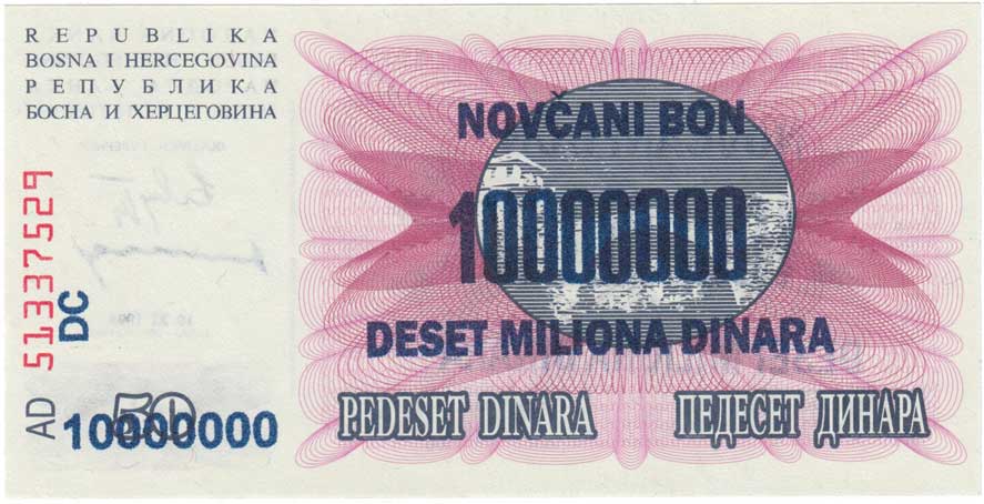 | 3410. | 10.000.000 Dinárů 1993, Pick.36 - nevydaný přetisk na