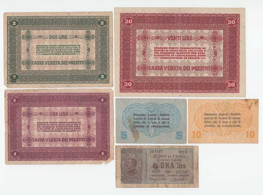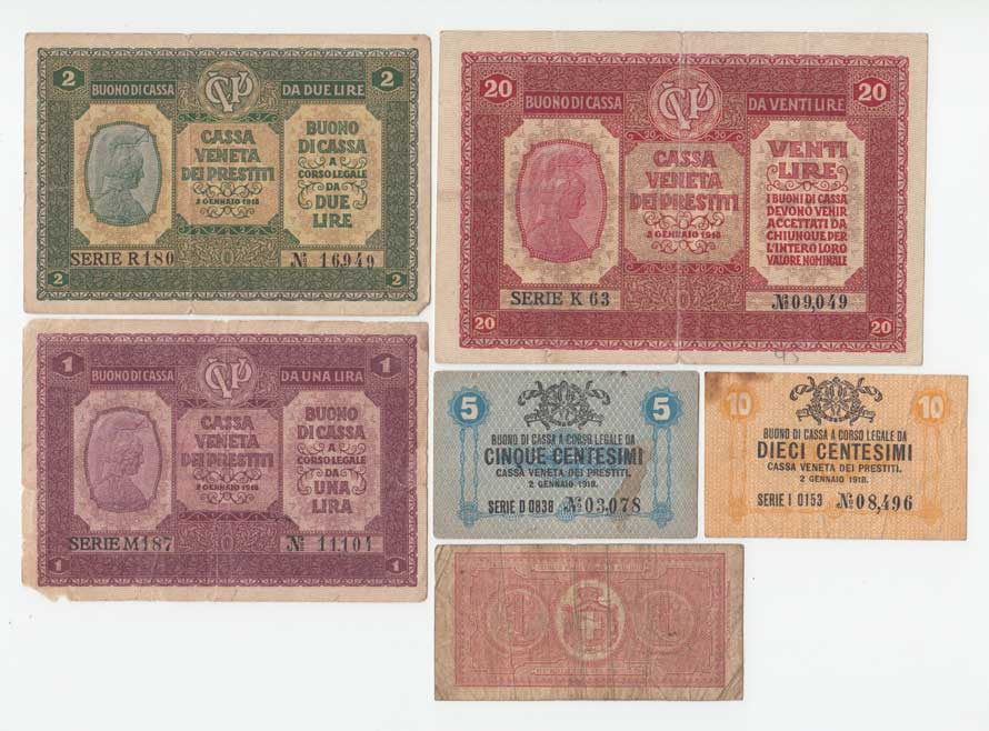 | 3438. | Konvolut italských bankovek z let 1914 - 1918, 6ks | - | 40,- | 75,- |