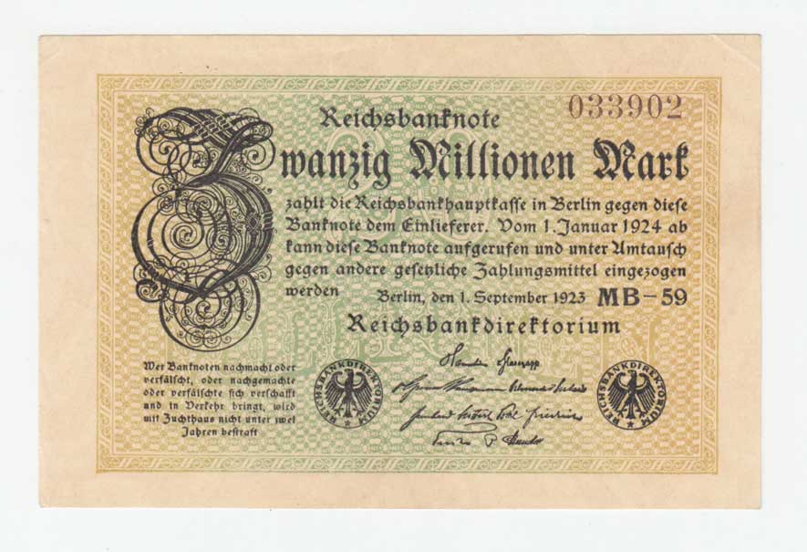 | 3534. | 20 Mio Marek 1.9.1923, Pick.108c, Ros.107e - sr.MB59 | 1- | 20,- | 20,- |