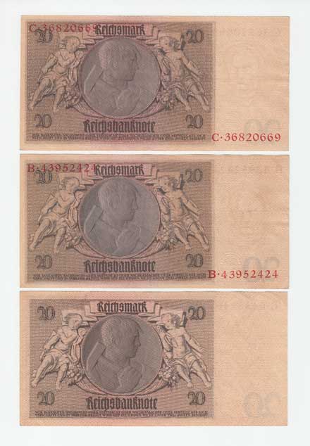 | 3589. | 20 Marka 1944, Pick.195d, Ros.204d, (8 sl., bez F) | 3 | 50,- | 60,- |