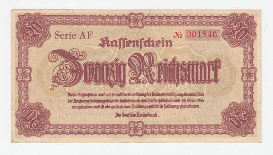 | 3577. | 20 Marka 1945, Pick.187, Ros.186 - sr.AF, Libereck