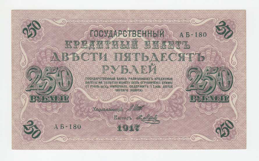 | 3701. | 250 Rubl 1917, Pick.36 - Šipov / Ja.Metz, v reversu
