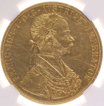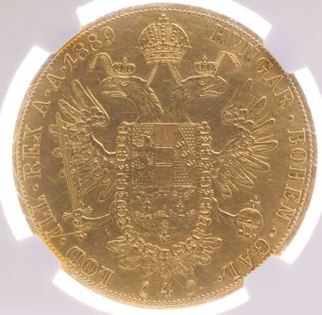 23. | 4 Dukát 1889 b.zn. (raženo 31.186 ks) NGC: UNC Details | tém.0/0 | 58000,- | --.- |