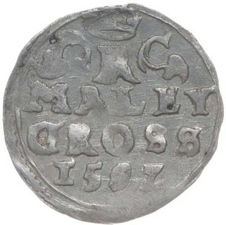 383. | Malý groš 1587, K.Hora-Šatný, HN.1b (opis 7a), Ja.6b č.ned. | -1/1- | 500,- | --.- |
