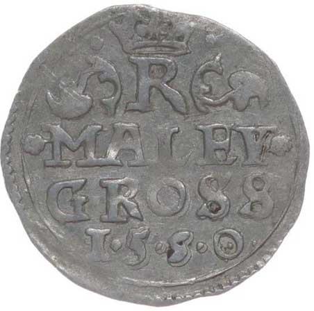 379. | Malý groš 1580, K.Hora-Šatný, HN.1b (opis 7a), Ja.6b
