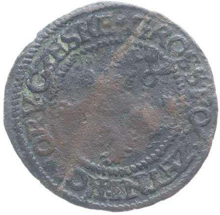 389. | Malý groš 1595, Jáchymov-Hoffmann, HN.8b (opis 8), J.5 dr.ned. | 1/1 | 500,- | --.- |