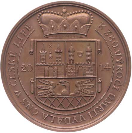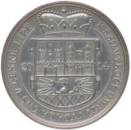 rouna, opis 2014, Cu 38,3 mm, 23,8 g, náklad 100 ks MF.A4/6c, vydala ČNS Česká Lípa |