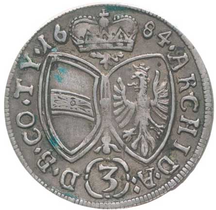 734. | 3 Krejcar 1684, Hall, Nech.2446, M-A.183 (tab.28/39), Her.1428 | -1/1 | 260,- | --.- |