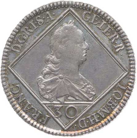 762. | 30 Krejcar 1760, Hall, Nový.29 | 1/1 | 4400,- | --.- |