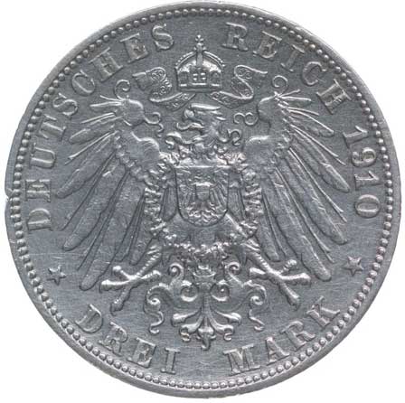 1407. | 3 Marka 1910 F, KM.635, J.175 dr.hr. v rev. | 1/1 | 320,- | --.- |