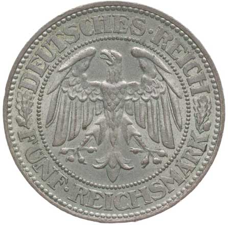 1415. | 50 Reichspfennig 1933 G, KM.49, J.324 R! | 1/1 | 1000,- | --.- |