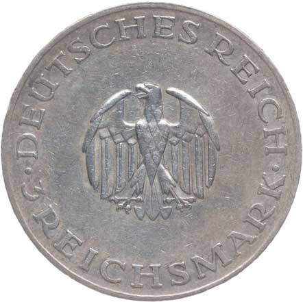 1411. | 3 Marka 1929 G - Lessing, KM.60, J.335 | 1/1 | 2000,- | --.- |