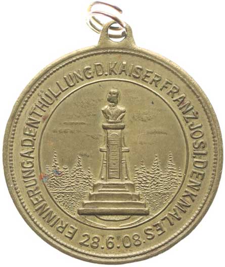 Poprsí čelně, opis / u sloupu vojenské atributy, v ploše data vítězných bitev, opis, Sign.Brehmer F., Bronz 40 mm dr.hr. |