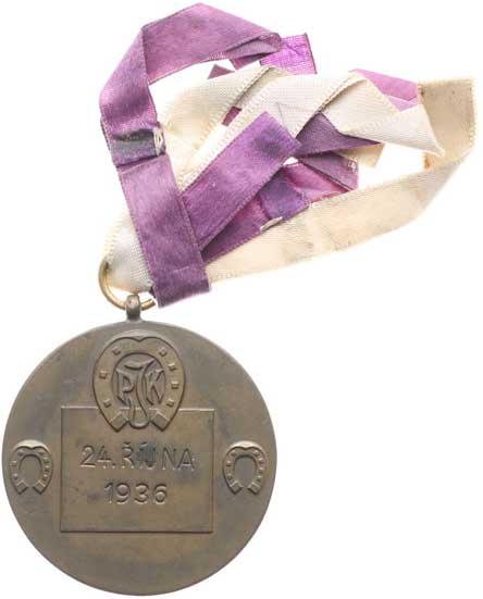 Hlava koně zprava / uprostřed podkova s "ČSJK" ve věnci, opis Sign.Pichl, Postř.bronz 49 mm |