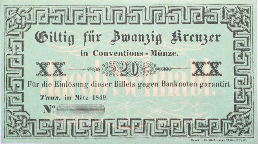 | 1166. | Nepomuk - 20 Kr.stř. III.1849, Jan Mareš, bez série, čísla a podpisu
