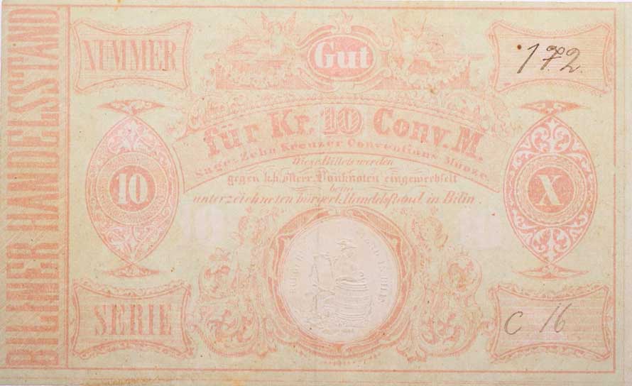 | 1161. | Bílina (Bilin) - 10 Kr. C.M., b.l., Biliner Handelsstand,