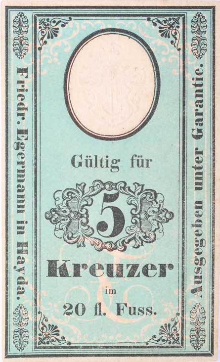 | 1167. | Nový Bor (Hayda) - 5 Kr. b.l., Friedrich Egermann, bez čísla a série