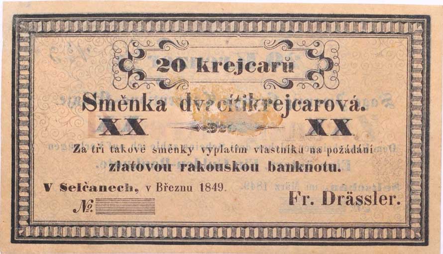 | 1168. | Sedlčany (Seltschan) - 20 Kr.C.M. III.1849, Fr.Drässler