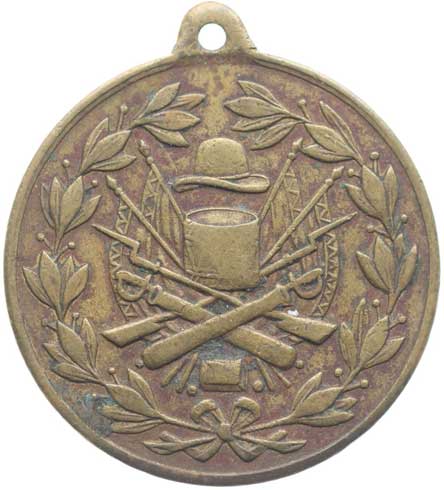 spolku 9.7.1899, vojenské atributy, opis / 6řádk.nápis, opis Postř.bronz 31 mm orig.raž.ouško |