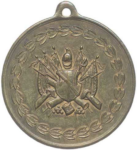 spolku14.7.1895, vojenské atributy, opis / 7řádk.nápis, opis Postř.bronz 31 mm orig.raž.ouško |
