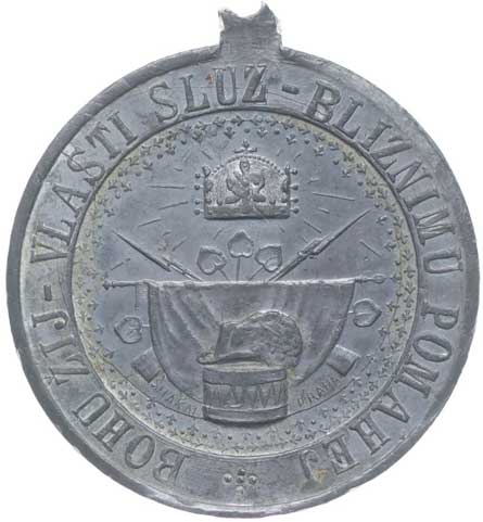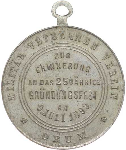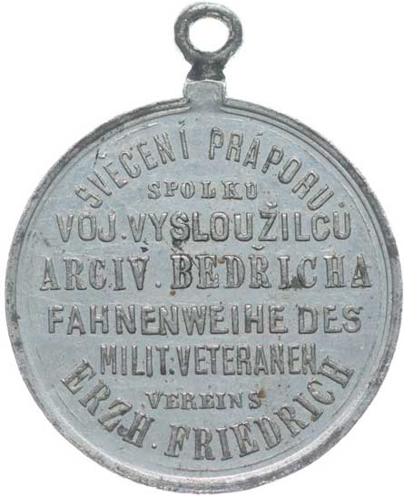 spolku 10.7.1887, vojenský kříž ve věnci, opis / korunovaný rakouský znak, opis, Sn 27 mm orig.raž.ouško |
