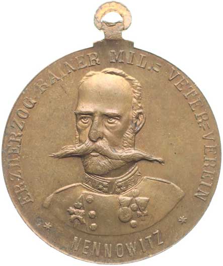 veteránů, poprsí arcivévody Rainera čelně, opis / 3řádk.nápis, opis, 1899, Nesign., Bronz 31 mm, Haus.5871 orig.raž.ouško |