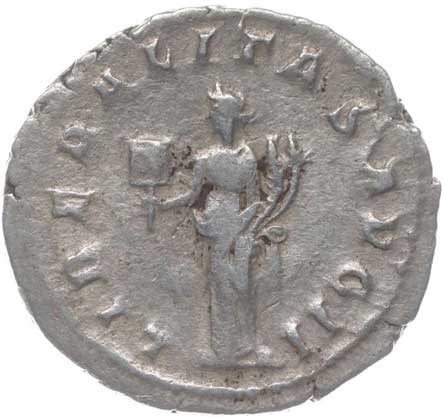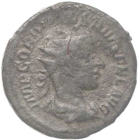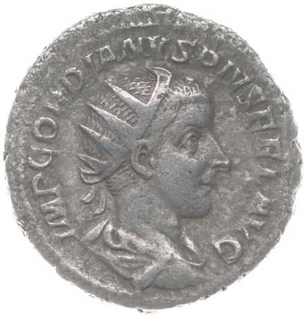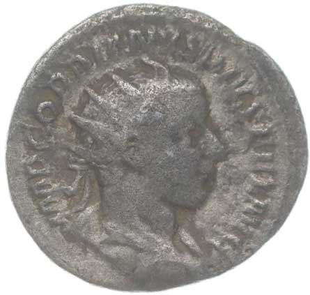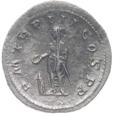 | 1486. | AR Antoninianus, Rv:"P.M.TR.P.III.COS.II.P.P.", stojící Gordianus