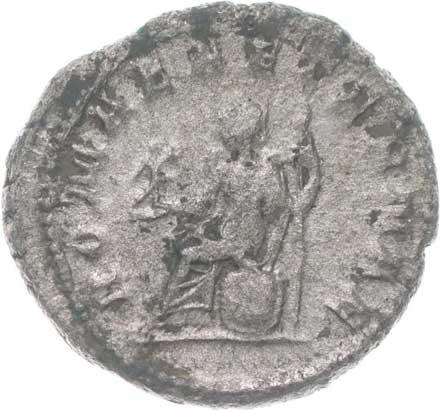 | 1489. | AR Antoninianus, Rv:"ROMAE AETERNAE", sedící Roma zleva