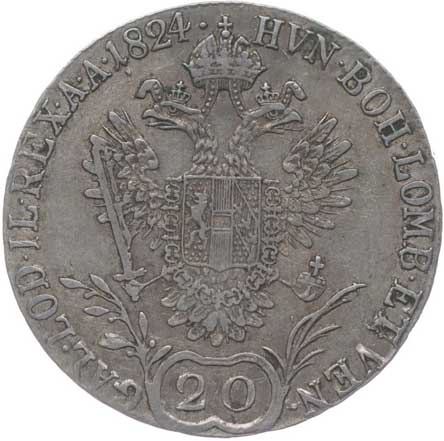 | 1824. | 20 Krejcar 1825 E dr.just. v av. | 2/2 | 240,- | --.- |