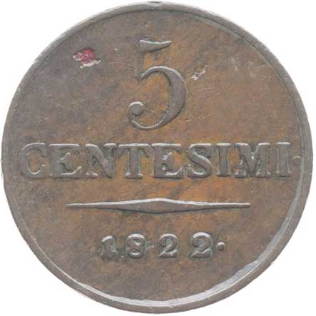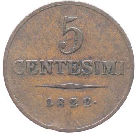 | 1860. | Cu 5 Centesimi 1822 V, P.52 dr.hr. v av. | -1/1- | 260,- | --.- |