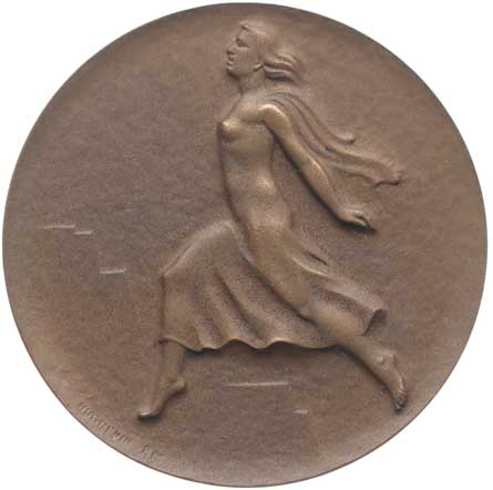 Poprsí zleva, opis / "70" sestavená z denárů, lipová ratolest vročení, Sign.Špánek, Bronz 35 mm, MF.D186/1c |
