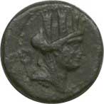 | 112. | AE 10 mm A: Ženská hlava vpravo R: Tři půlměsíce v úsečích Θ - H - B