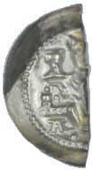 | 1000. | 1/2 brakteátu 28 mm. Panovník na trůnu, s pohárem, vedle nohy "A", blí