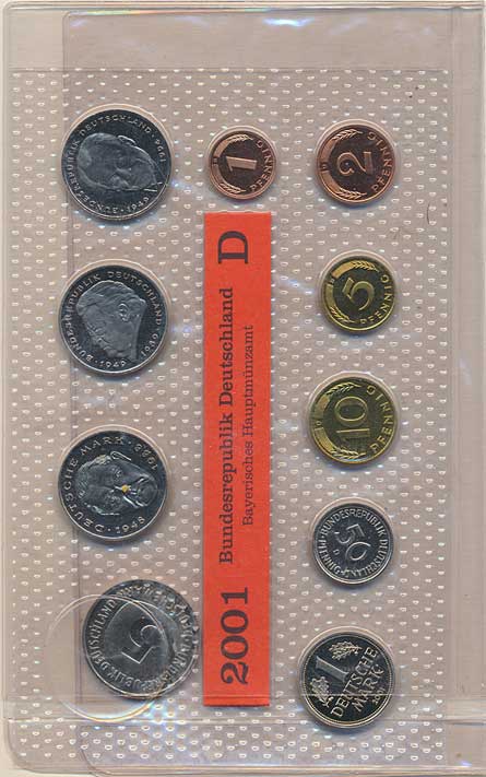 | 3659. | Ročníková sada mincí 2001 minc. D (1, 2, 5, 10, 50 Pf., 1, 5,