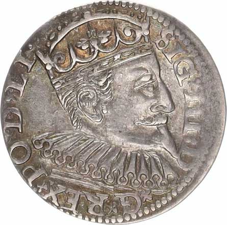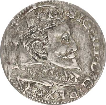 | 4075. | III groš 1597 Riga, Wulf - var.: poprsí přerušuje opis mezi D - +