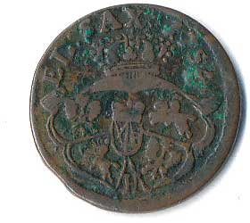 | 837. | Soldino 1601, stylizovaný zámek v Janově, opis: +DVX.GVB.REIP.GEN /8