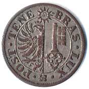 | 914. | 1 Follaro b.l. (1452-1612), hlava muže, MONETA RACVSII / tři věže s branou,