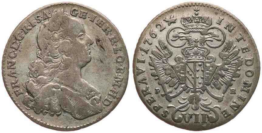 | 215. | František Lotrinský 1745–1765. – VII. krejcar 1762 P–R, minc. Praha, mincm. Erdmann, MKČ-1998, vada střížku, podložní lístek. | 2/1 | 600,- | 1100,- |