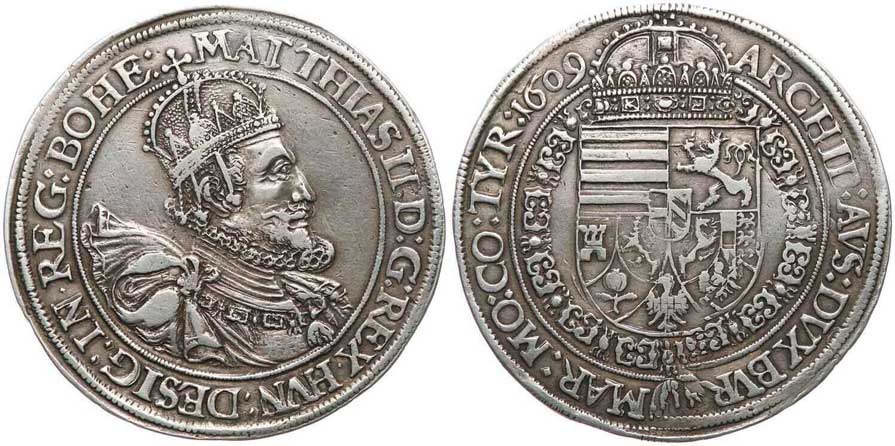 | 271. | Tolar 1609, minc. Vídeň, s opisem „REG:BOHE:“, KM-104 /1737/, Dav-3038, Voglhuber tab. č. 64/112/I., průměr 41 mm, 27,55 g. | 1/1 | 39000,- | --.- |