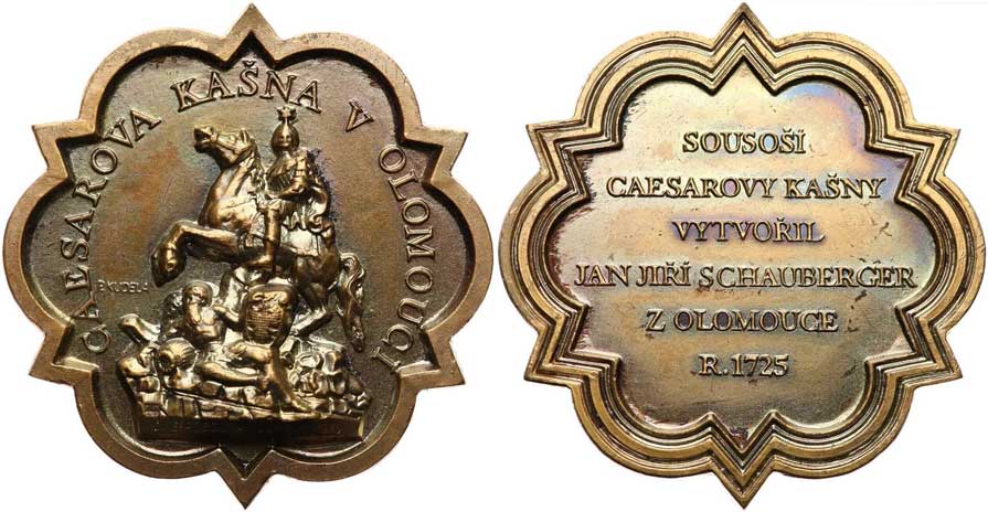 | 1287. | Kudela P., 1975. – Caesarova kašna. – Sousoší z kašny / 6 ř. nápis. – Pat. bronz, 68 x 70 mm, F-A24/21b. | 0/0 | 160,- | 160,- |