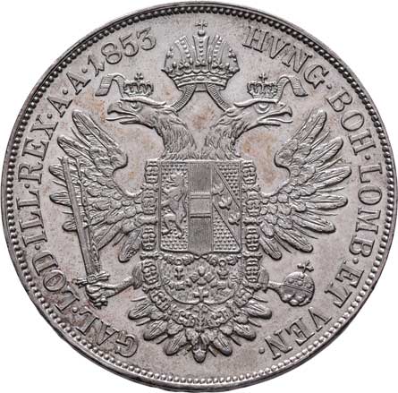 | 757. | Tolar 1853 A - hlava zprava, 25.954g, dr.hr.,