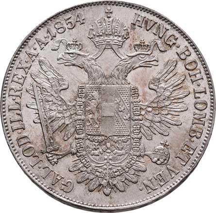 | 758. | Tolar 1854 A - hlava zprava, 25.996g, nep.hr.,