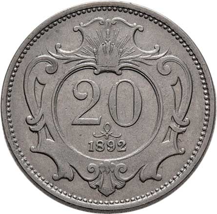 | 808. | 20 Haléř 1892, 4.017g, nep.hr., nep.rysky, pěkná