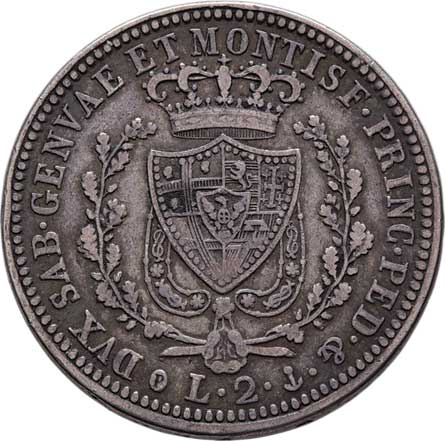 | 896. | 5 Lira 1850, P-kotva, Genova, KM.144.2 (Ag900),