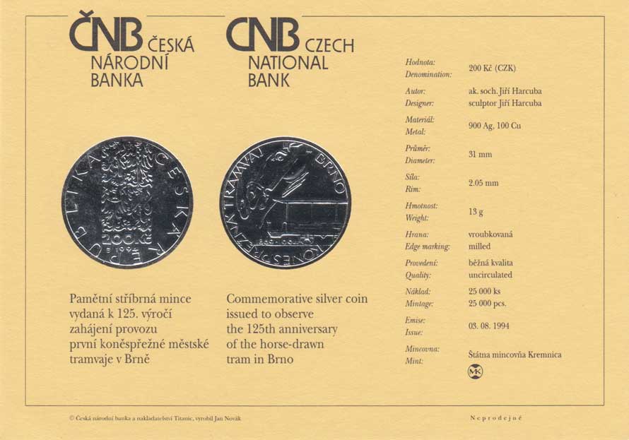 | 1705. | 200 Koruna 1994 - koněspřežná tramvaj v Brně,